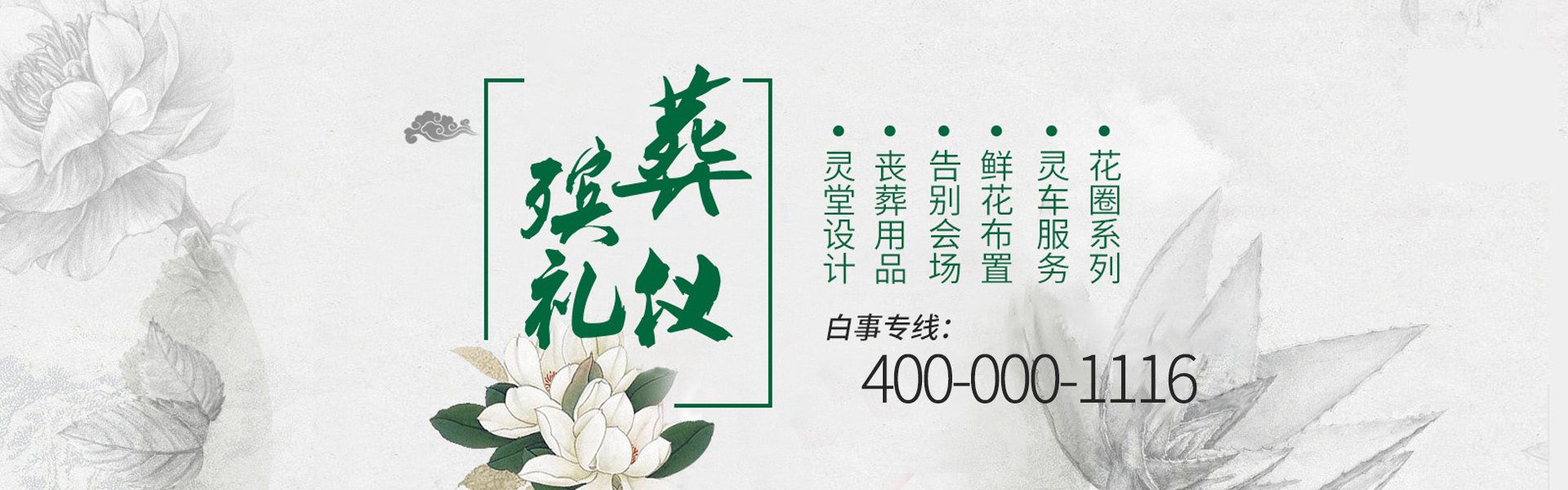店铺名称:贵州省贵阳市息烽县九庄镇白事用车租赁公司/殡葬一条龙 服务区域:永阳街道、永靖镇、温泉镇、九庄镇、小寨坝镇、西山镇、养龙司镇、石硐镇、鹿窝镇、流长镇、青山苗族乡 公司名称:福寿万年长殡葬服务公司主营业务:殡葬服务、灵堂布置、丧葬一条龙、殡仪车出租、白事服务、灵车接运、殡葬用品、长途跨省转运、火